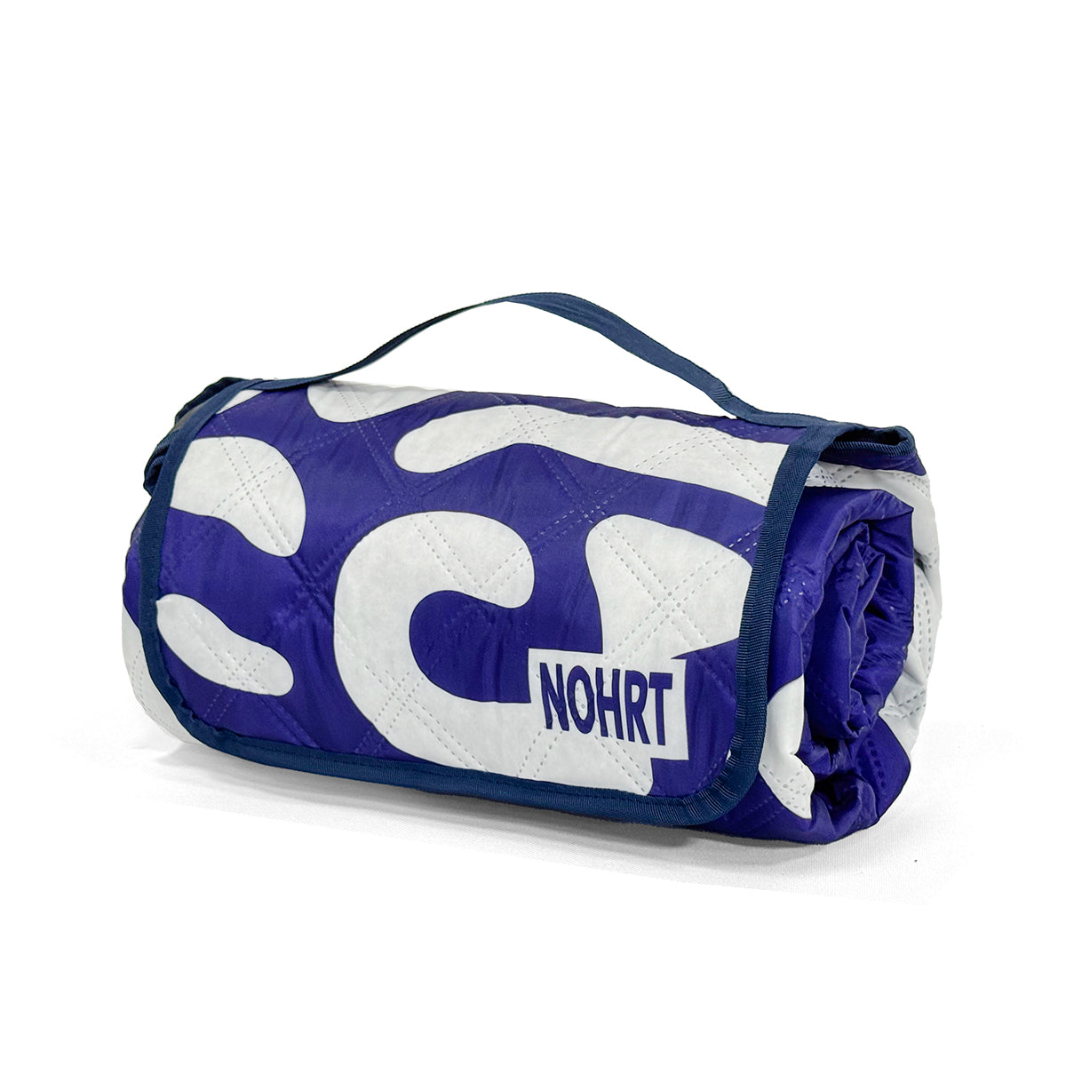 Folded NOHRT Flow blanket in travel-ready form – stylish and practical