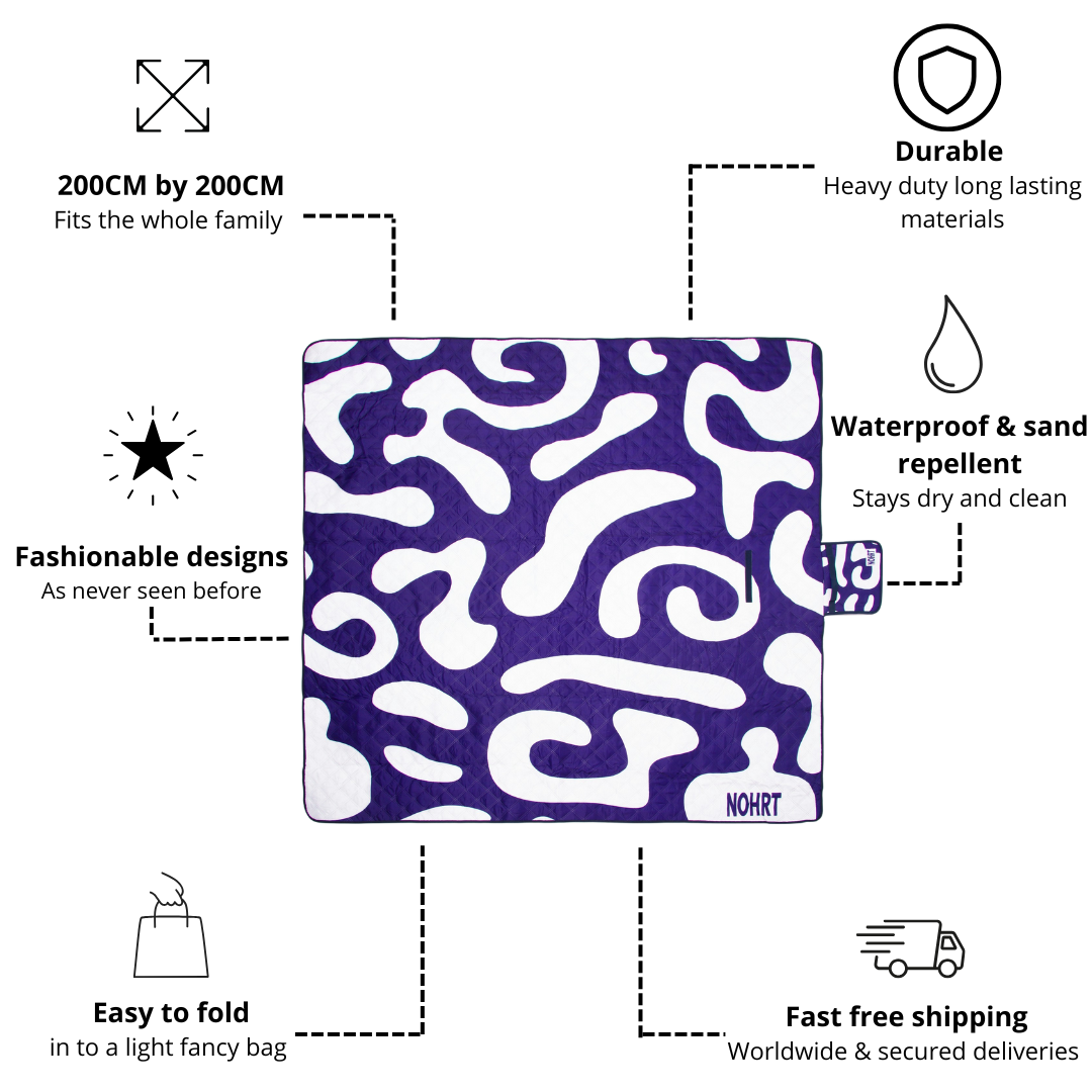 FLOW is all about movement, freedom and effortless style. Its abstract, organic shapes in rich blue and crisp white give it an artful and modern look that fits seamlessly into any outdoor or indoor setting. Whether you're relaxing at the beach, enjoying a quiet moment in the park, or creating a cozy vibe at home — FLOW adapts to the rhythm of your day.