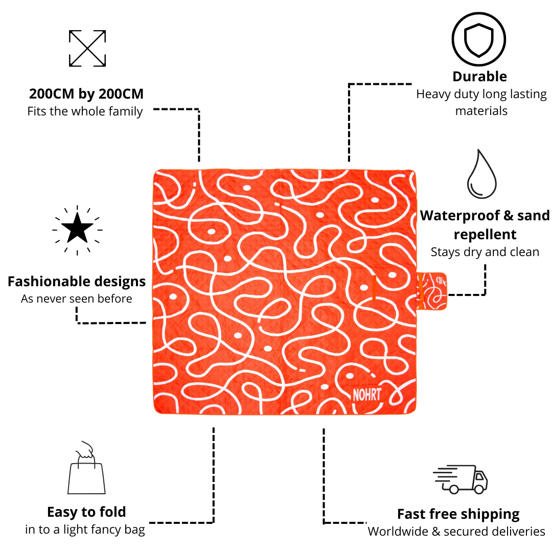 LOOP is bold, playful and full of energy — just like your outdoor plans. With its expressive orange base and looping white lines, this design brings a burst of joy to any setting, whether you're chilling on the beach, relaxing in the park, or catching the sunset from your balcony.